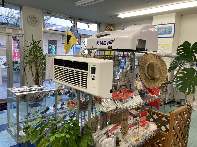 キャビンを冷却するためのツールとして、マリンエアコンが主流ですが、中には家庭用エアコンやスポットクーラーを取付られている方も多いようです。 |