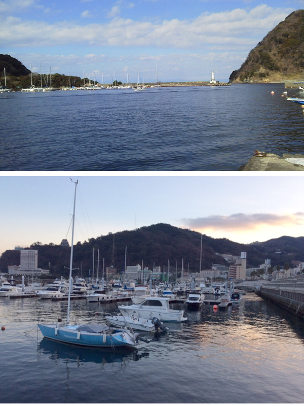 上が安良里港。下が熱海。 |