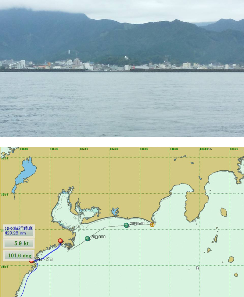 | 上画像は尾鷲港。 図は御前沖。 次港は大島予定。 |