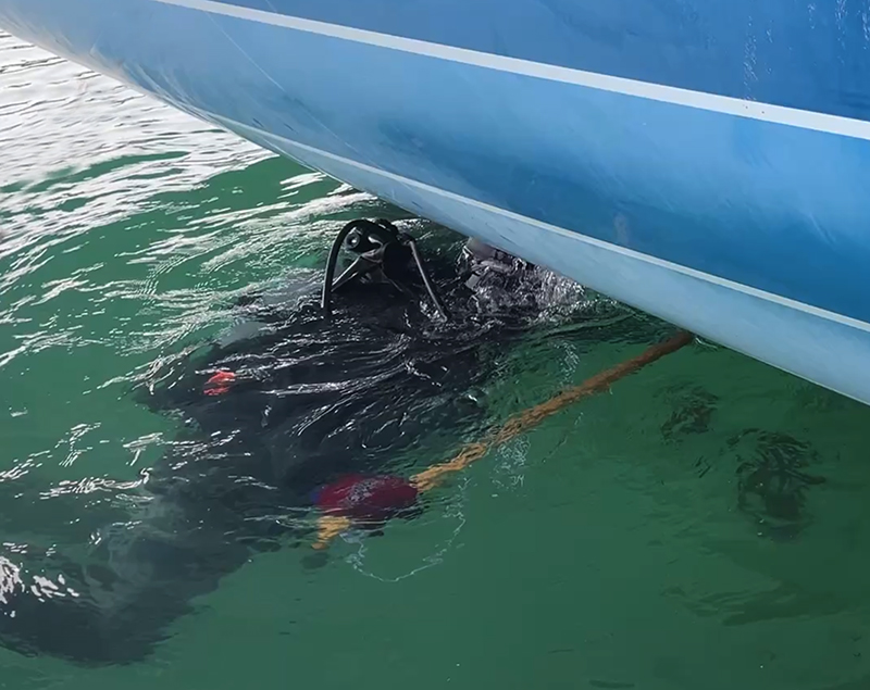 48feetのキールが深いため、ハーバーでの上架が不可なのでダイバーに潜ってもらった。