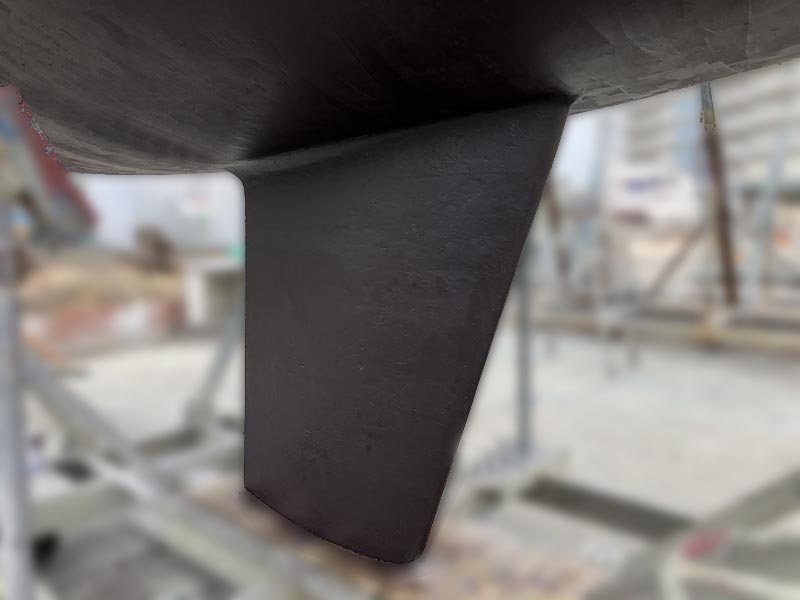 ヤマハメイドのキールにはサビが発生し易く、下地が見えるまでサンディングし、凹んだ部分にはエポキシパテとプライマーと015を塗布。