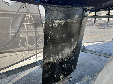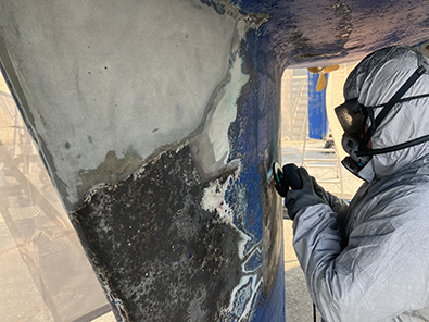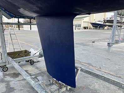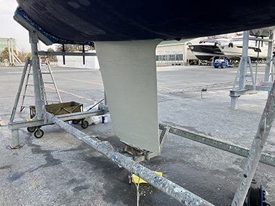 年一回、キールとスケグとラダーをメインにボトムをサンディング。