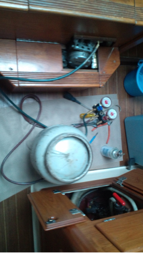 もちろん船底からはじまりハルの黄ばみとり、船名ハガシ、バフ掛け、エンジン整備、ジンク交換などなど・・・は当然に加え、この艇にはエアコン(クーラー)が装備されています。